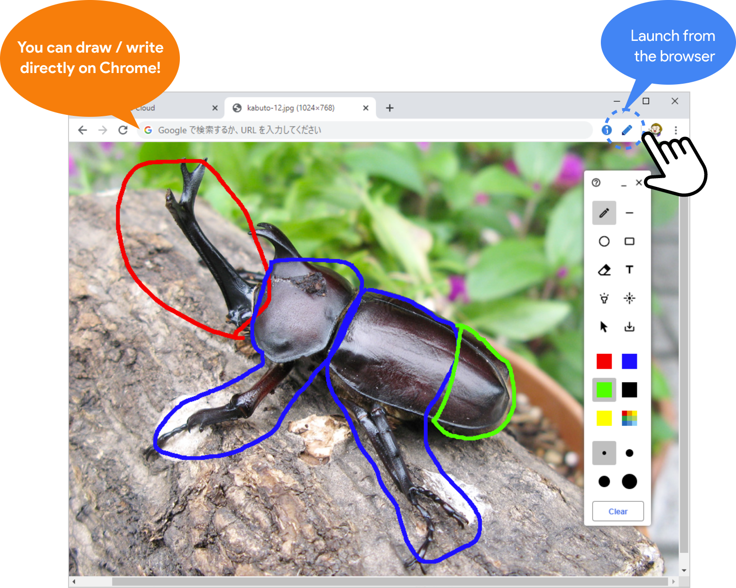 This is a function that allows users to write directly and freely on the Chrome browser screen.