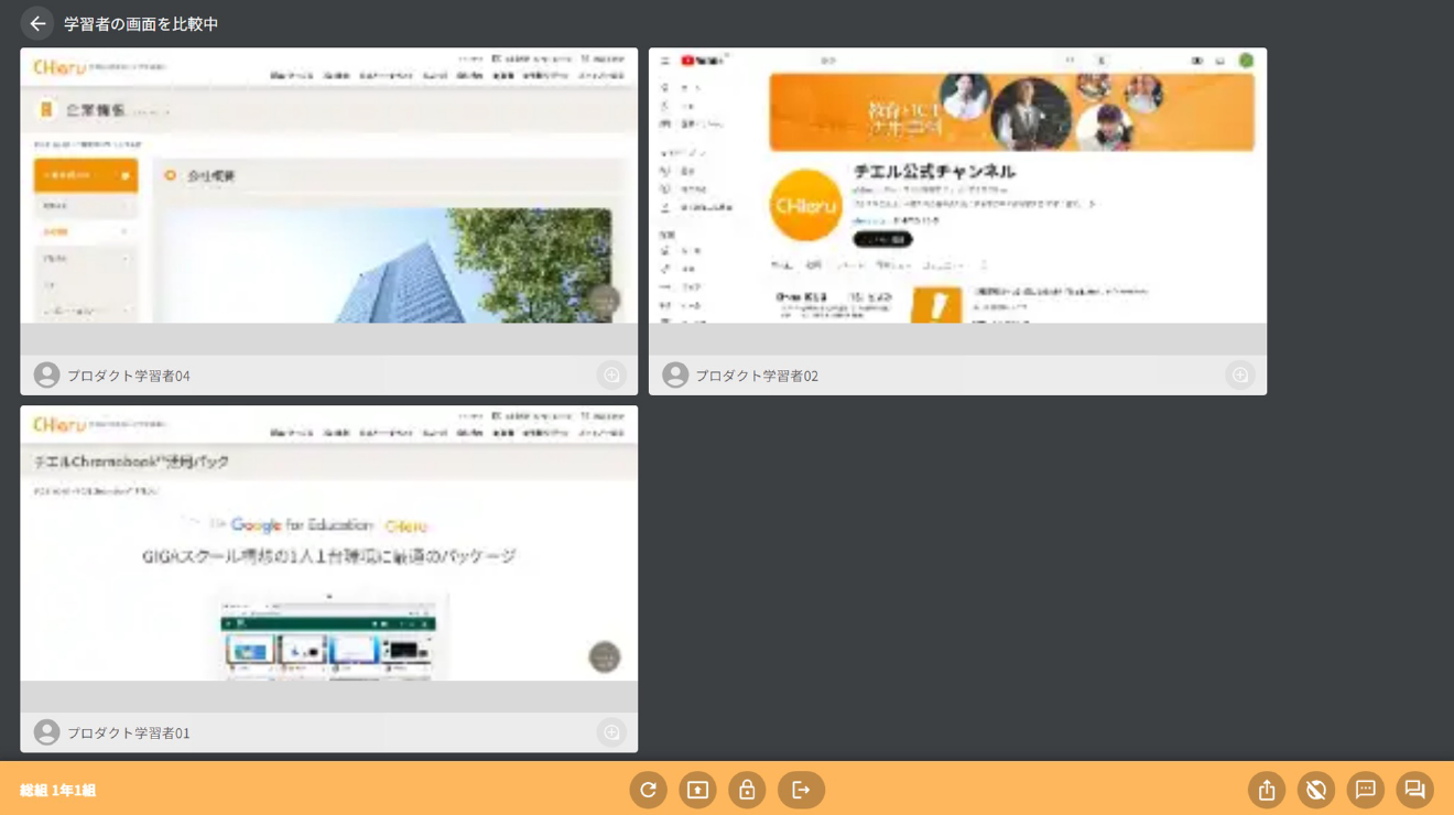 Learners' answers and various application screens can be displayed side by side on an electronic board or similar device.